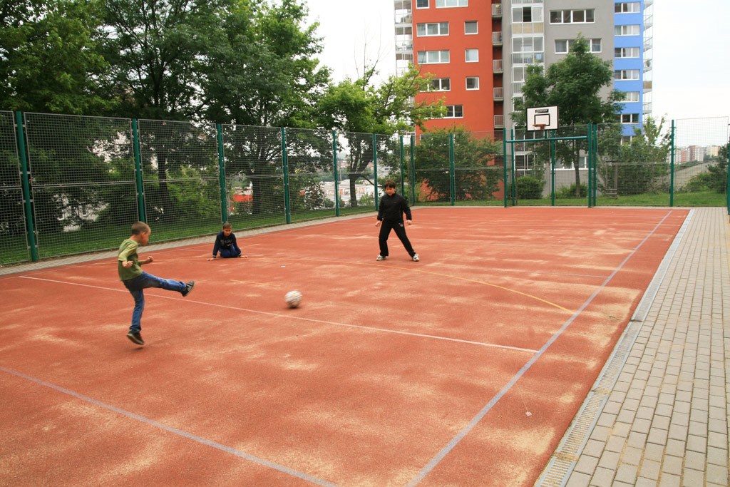 Vybavenost: hřiště - pískoviště, 2x pružinové houpadlo, věž se skluzavkou, závěsná houpačka, lezecká sestava se skluzavkou, sportoviště – víceúčelové sportovní hřiště s integrovanými fotbalovými brankami a basketbalovými koši s litým pryžovým povrchem. Stůl na stolní tenis.