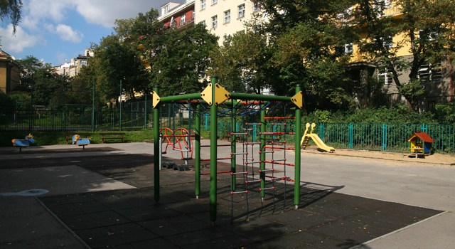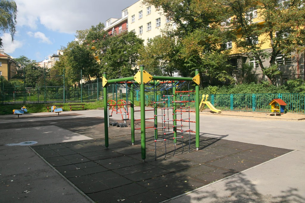 Vybavenost: hřiště – šplhací sestava, kolébačka, 2x kyvadlová houpačka, skluzavka a domeček v pískové zóně, sportoviště – fotbalové branky, povrch pryžové desky
