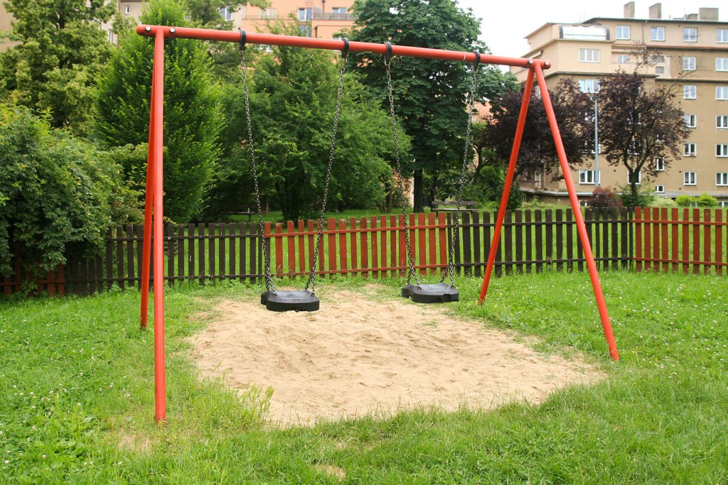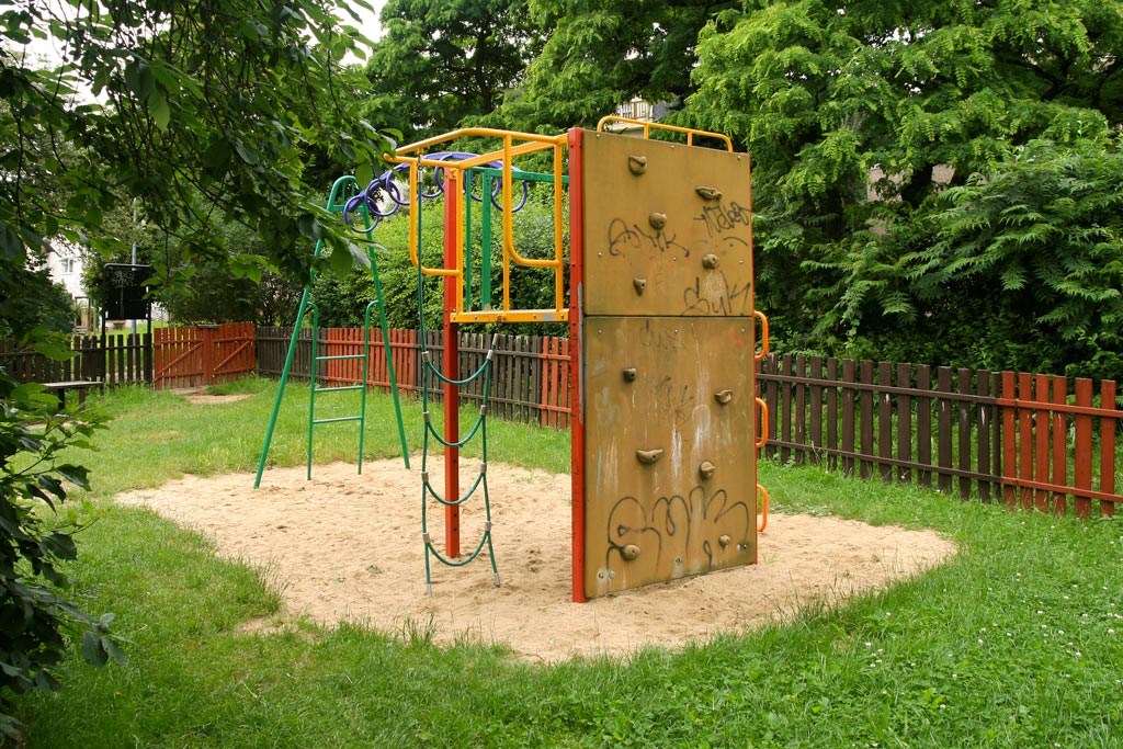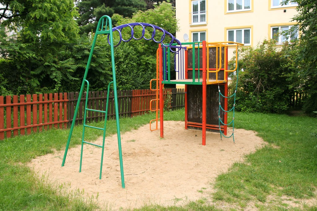 Vybavenost: 2 x houpačka, 3 x pružinové houpadlo, herní sestava s lezeckou deskou, žebříkem a ručkovací částí, věžová sestava se skluzavkou, pískoviště