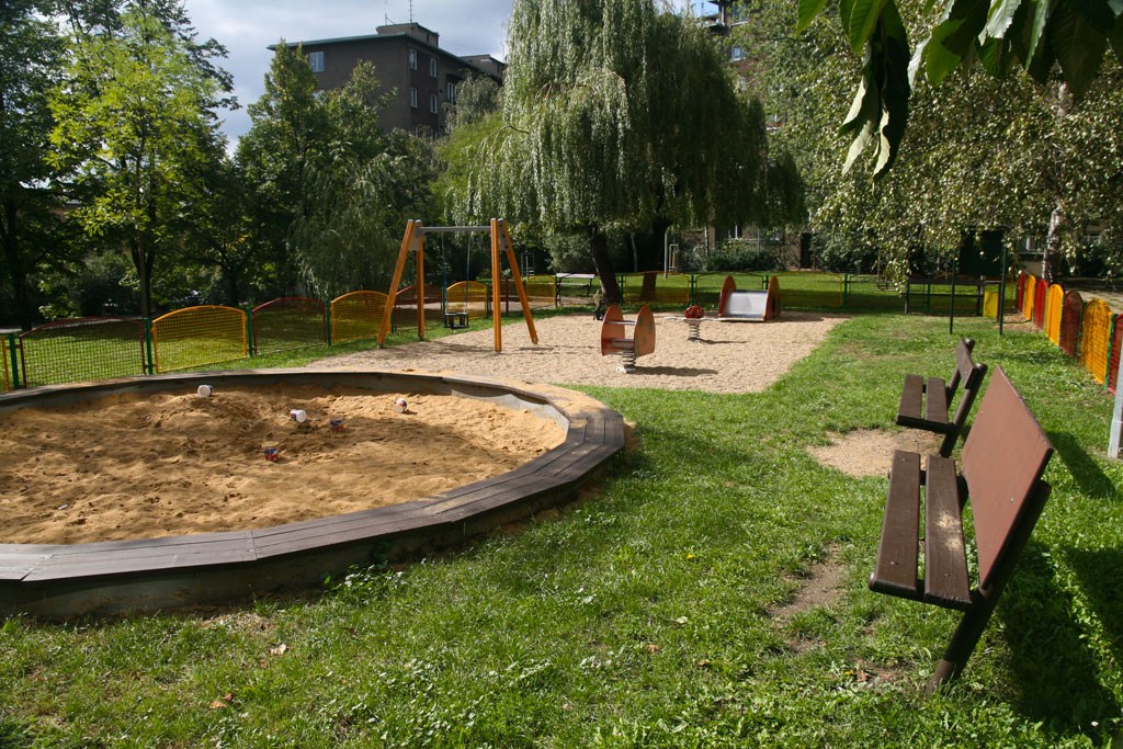 Vybavenost: kruhové pískoviště, kovová prolézačka