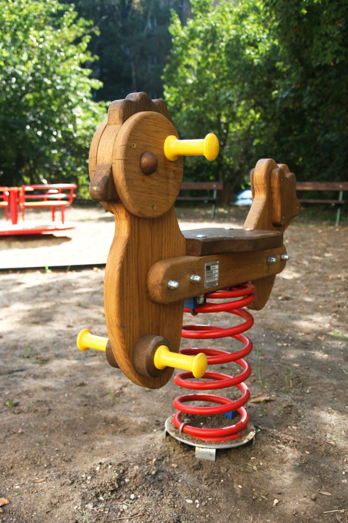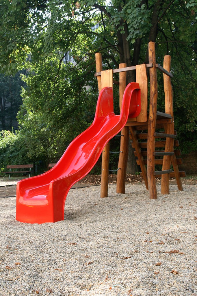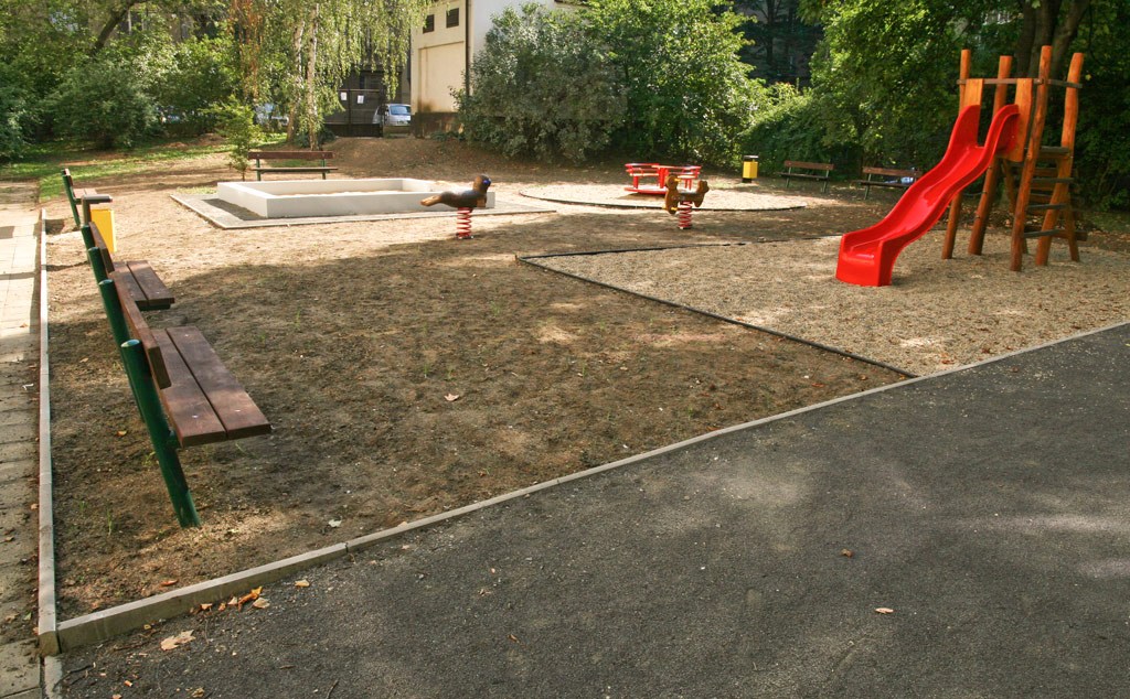 Vybavenost: věž se skluzavkou, pískoviště, 2 x kyvadlové houpadlo, dvojitá houpačka (sedátko s opěradlem), pružinové hopsadlo
