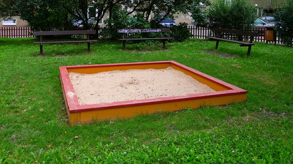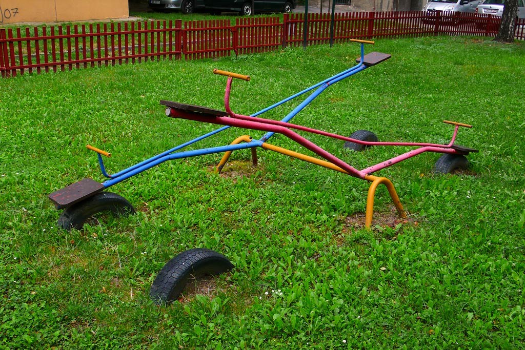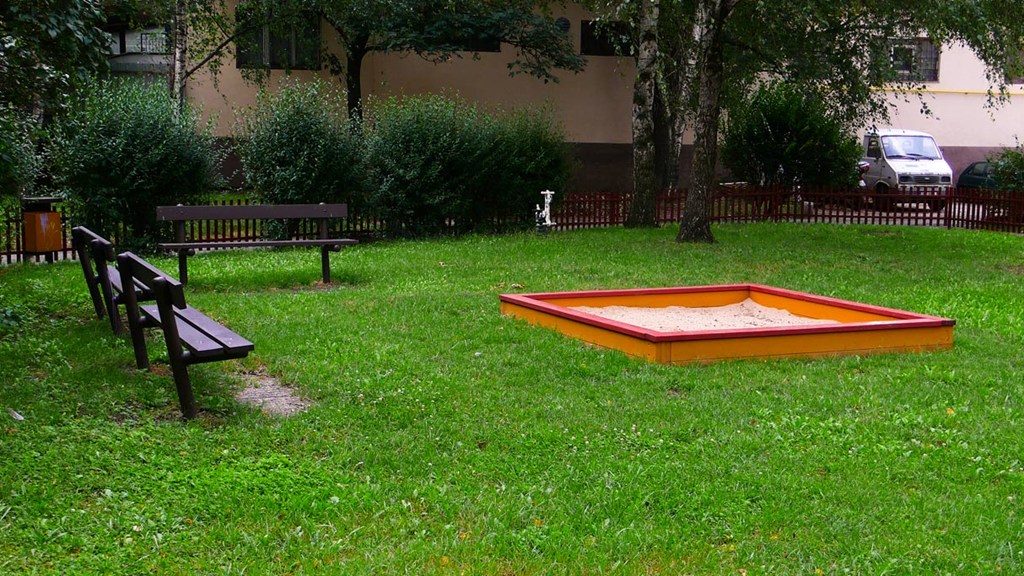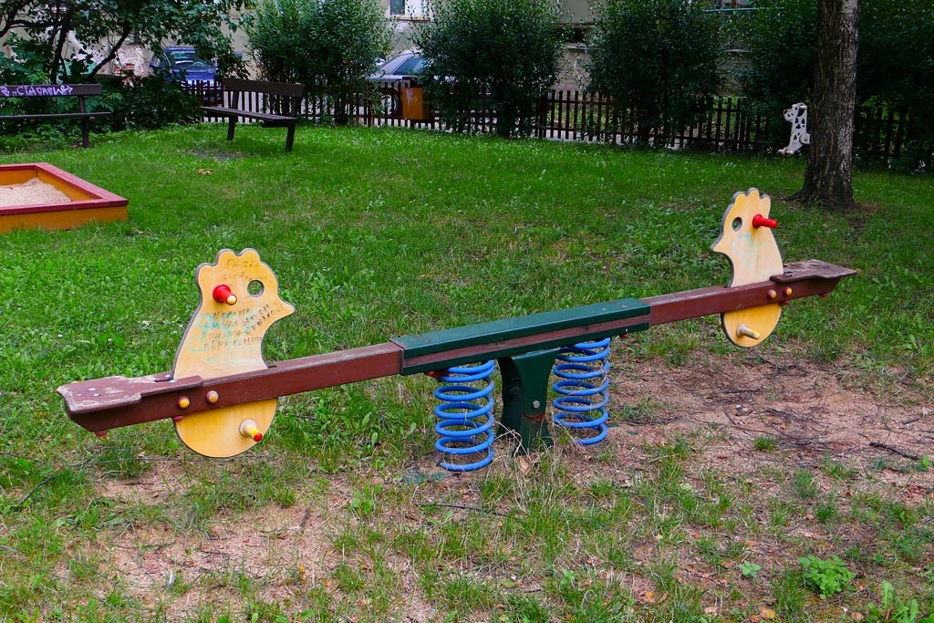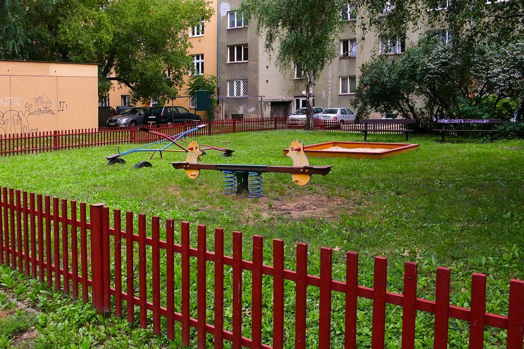 Vybavenost: pískoviště, skluzavka, 2 x váhadlová houpačka, 2 x pružinové houpadlo, prolézací sestava, mimo oplocenou část: kolotoč, hrazda