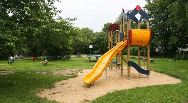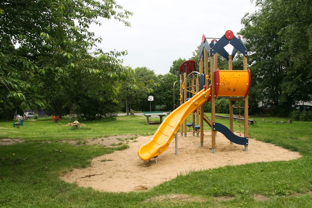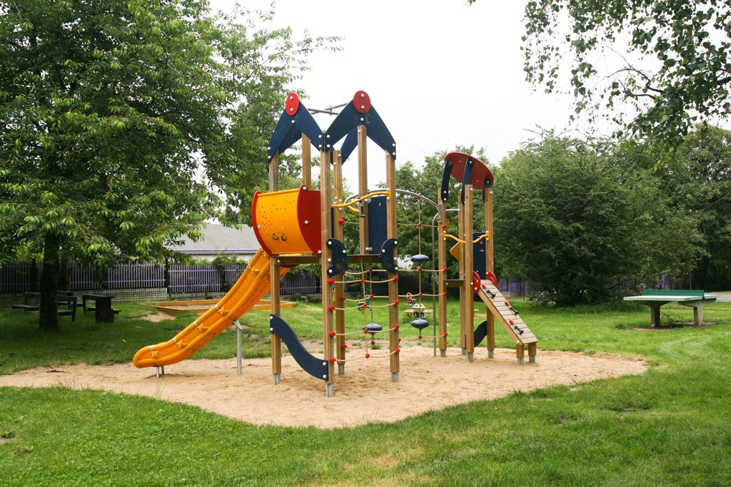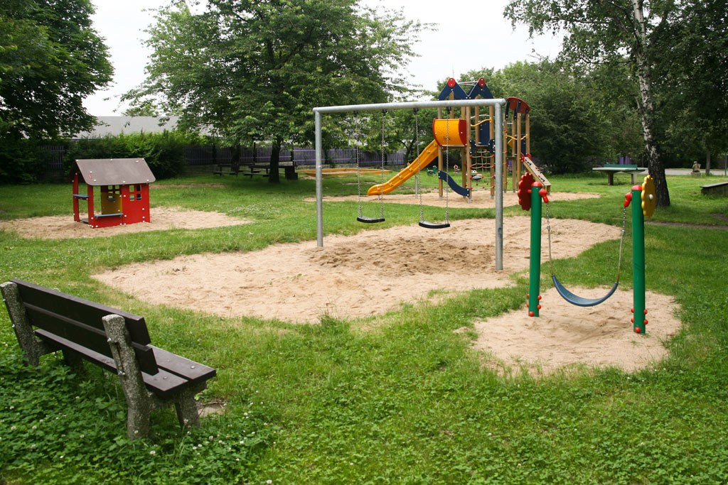 Vybavenost: Sportovní plocha s brankami a basketbalovým košem, stůl na stolní tenis, kolotoč, pískoviště, bradla, věž se skluzavkou, 2 x kovová prolézačka, 4 x váhadlová houpačka, klasická houpačka – sedátko s opěradlem, 2 x pérové houpadlo