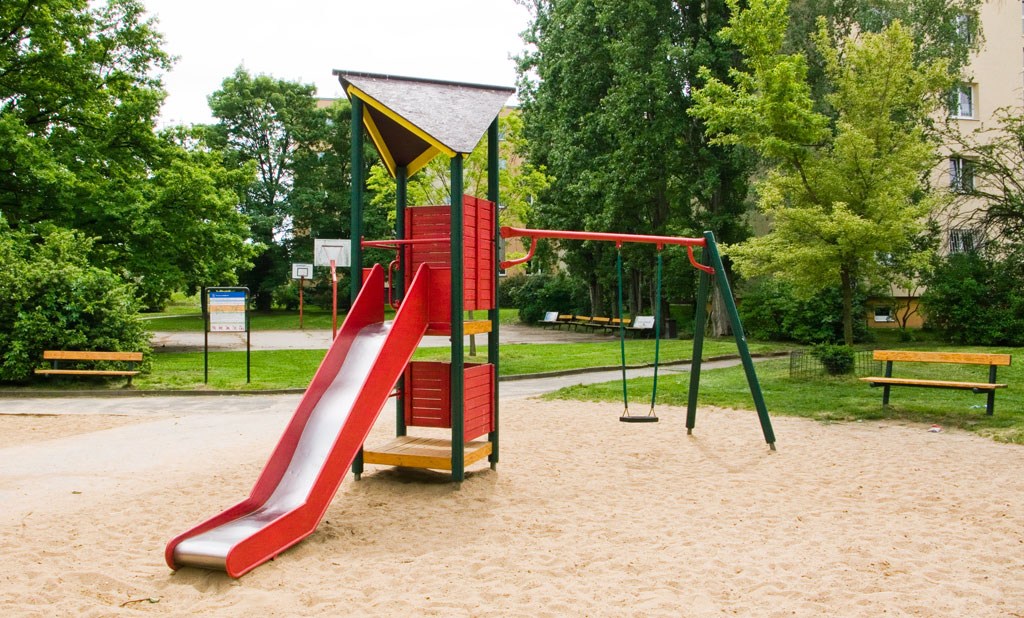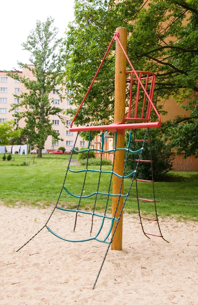 Vybavenost: věžová sestava se skluzavkou a houpačkou, lanová síť s námořnickým košem, kyvadlové houpadlo, kladina s balančními prvky, sestava pro hru v písku se skluzavkou