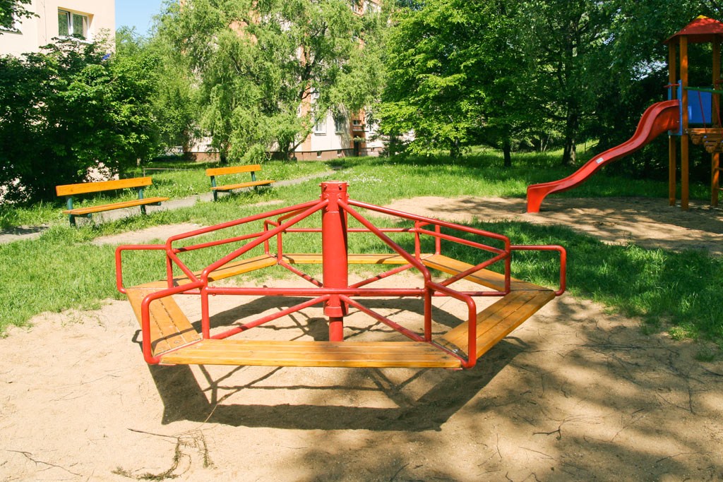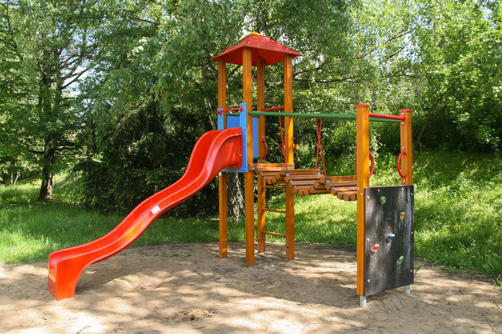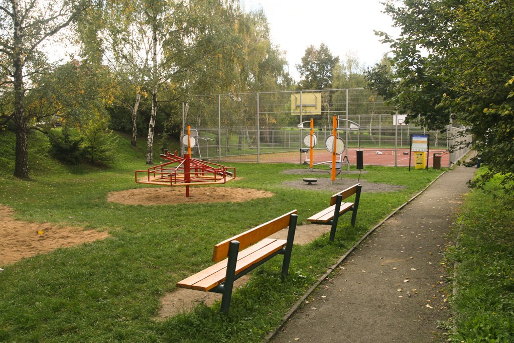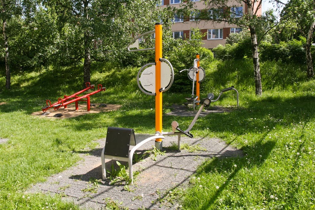 Vybavenost: věž se skluzavkou, kolotoč, 2 x váhadlová houpačka; 3 x fitness zařízení (každé sestávající se ze tří cvičebních zón)