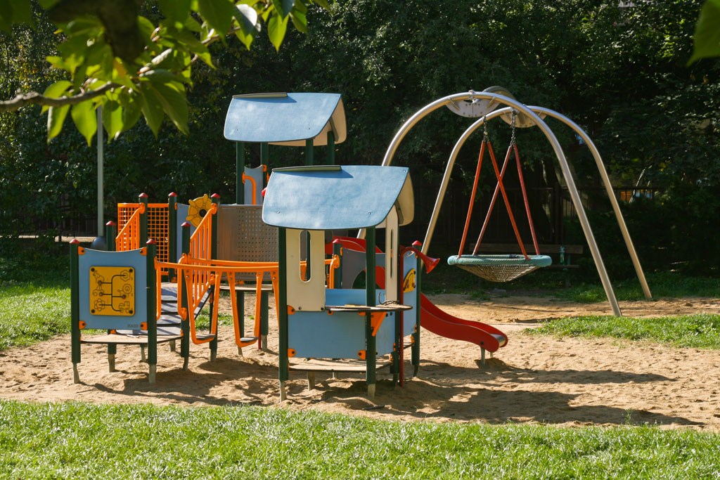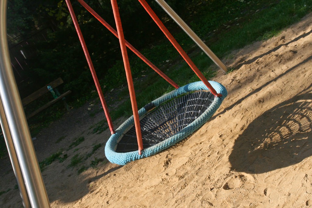 Vybavenost: pískoviště, herní sestava víceúčelová, lanová pyramida, balanční dráha, pohyblivá kladina, houpačka „hnízdo“, hopsadlo s jednou sedačkou, hopsadlo se čtyřmi sedačkami, víceúčelová sestava pro malé děti