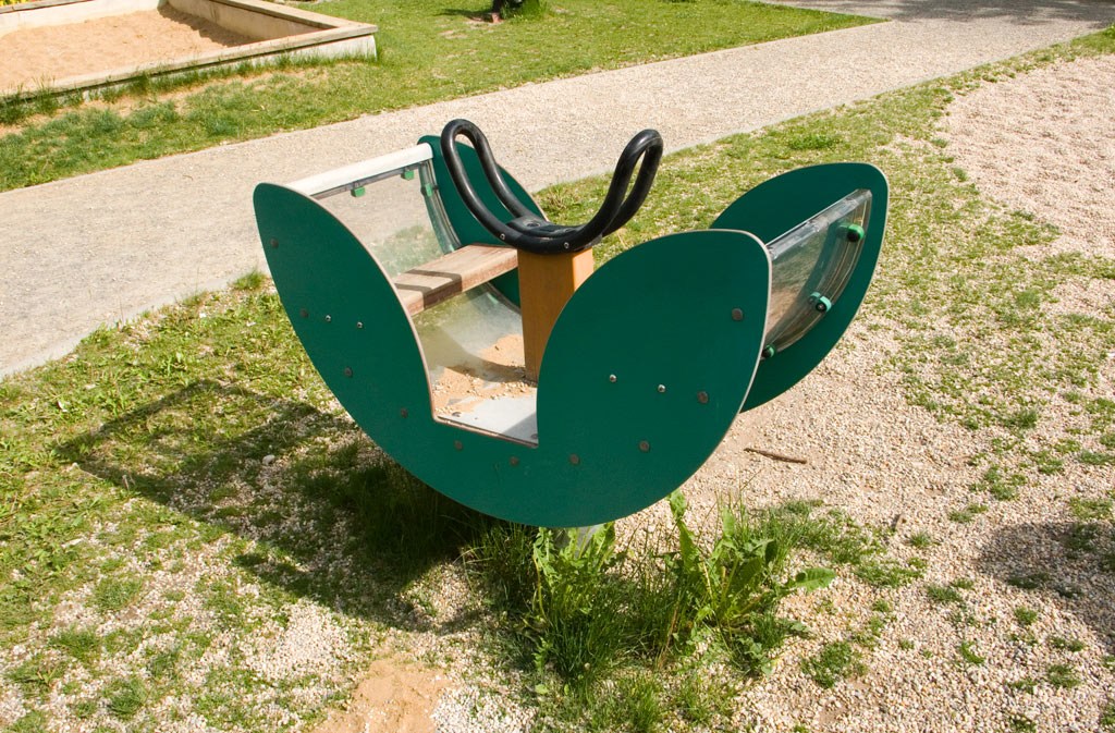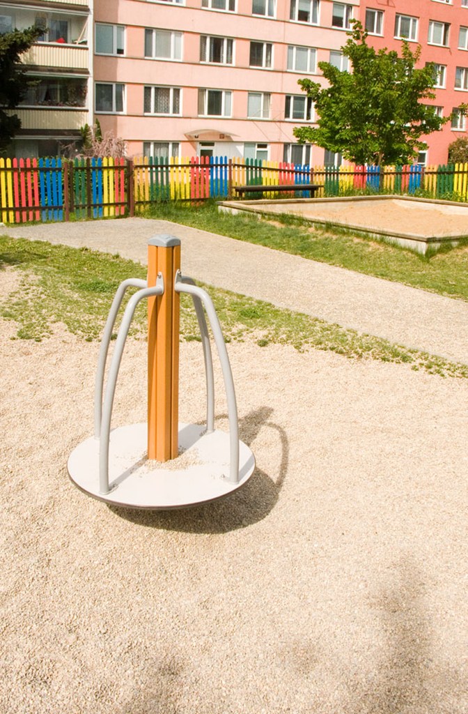 Vybavenost: pískoviště, 2 x váhadlová houpačka, domeček se skluzavkou, houpačka