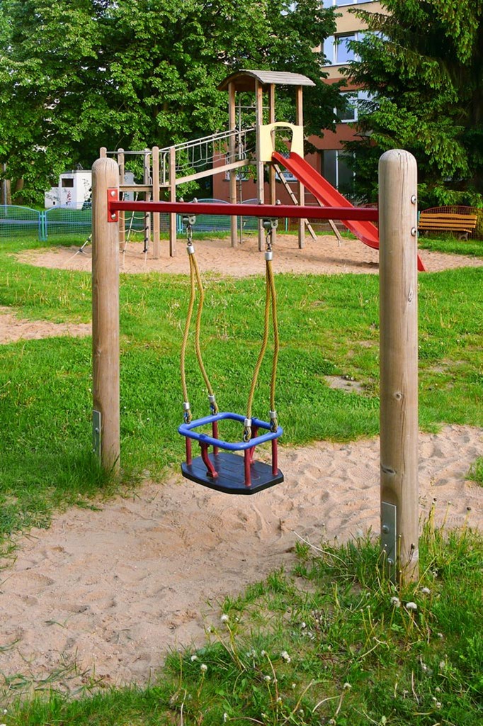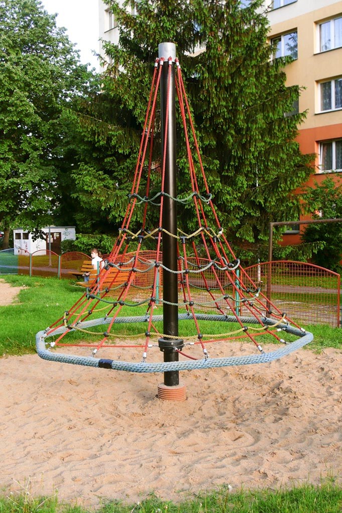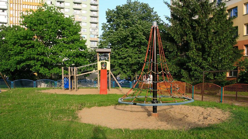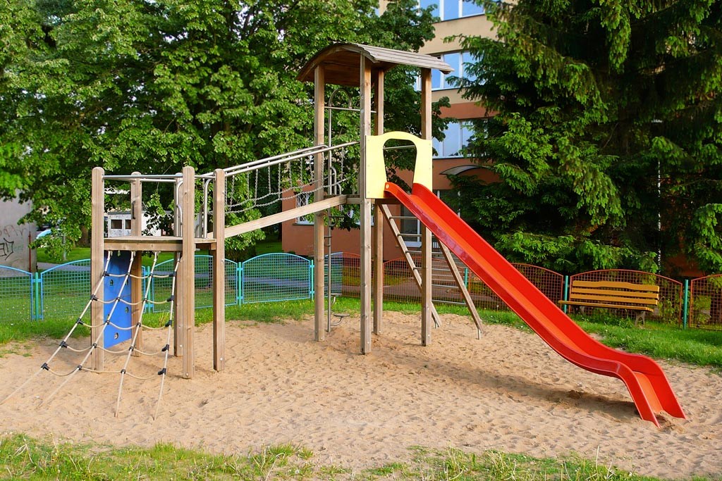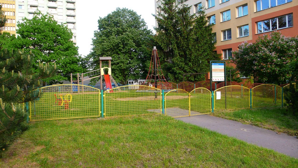 Vybavenost: multifunkční sestava se skluzavkou, balančním mostem, lanovou stěnou apod., houpačka pro batolata, 2 x pružinové houpadlo, lanový kolotoč, houpačky, pískoviště