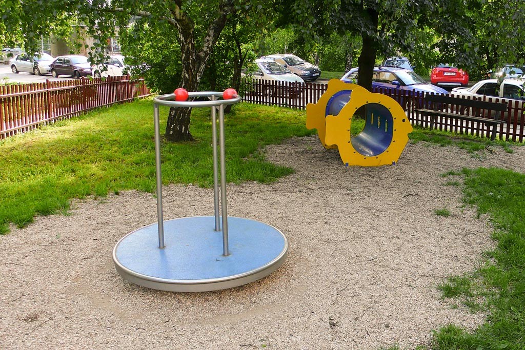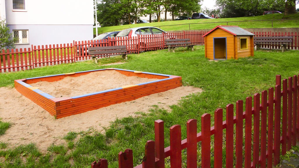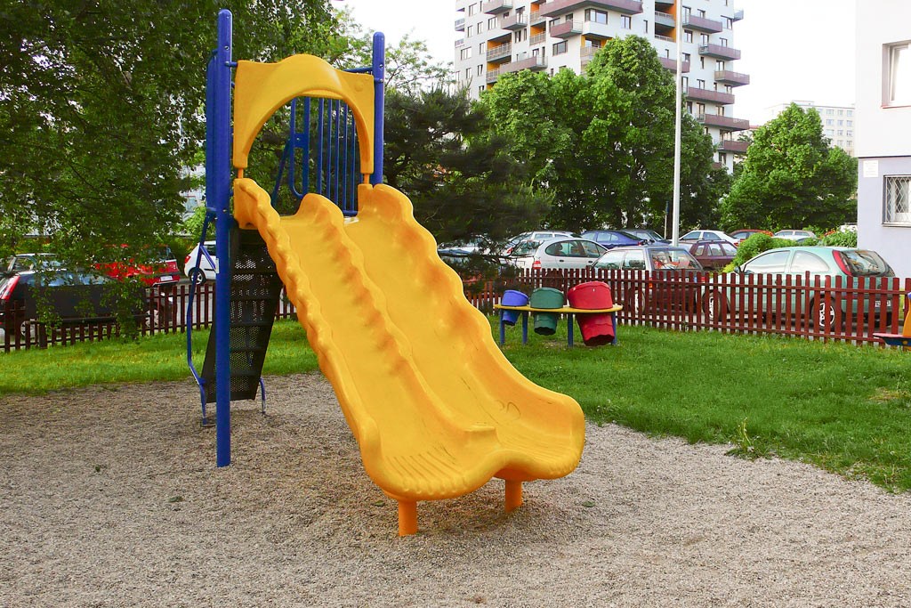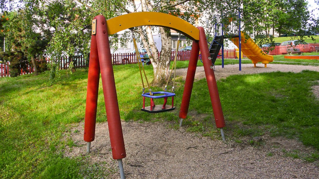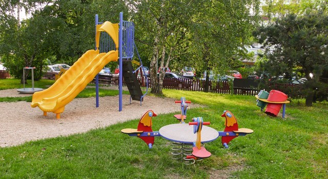 Vybavenost: dřevěný domek, pružinové čtyřhoupadlo, pískoviště, tamtamy, plastová dvouskluzavka, kruhový kolotoč, plastová průlezka, závěsná houpačka