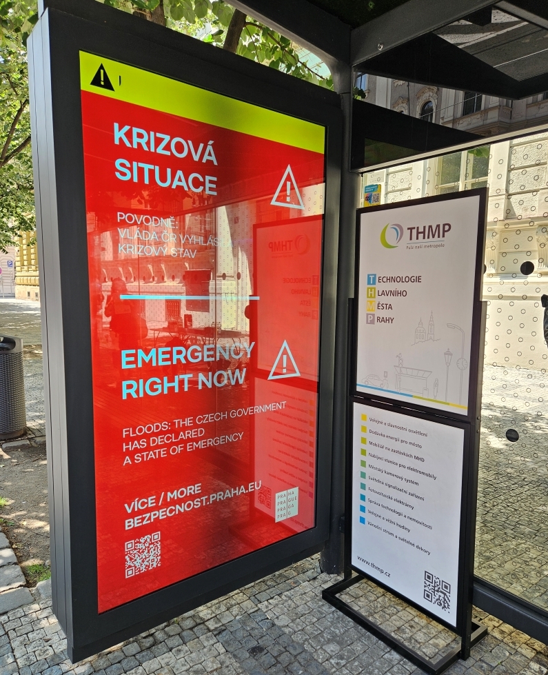 Městská společnost Technologie hlavního města Prahy (THMP) představila nový systém pro rychlé šíření krizových informací prostřednictvím digitálních obrazovek v přístřešcích městské hromadné dopravy. Díky technickému řešení vyvinutému na míru pro hlavní město je nyní možné během několika okamžiků informovat Pražany i návštěvníky metropole o mimořádných událostech, především v případech ohrožujících život a bezpečí obyvatel.