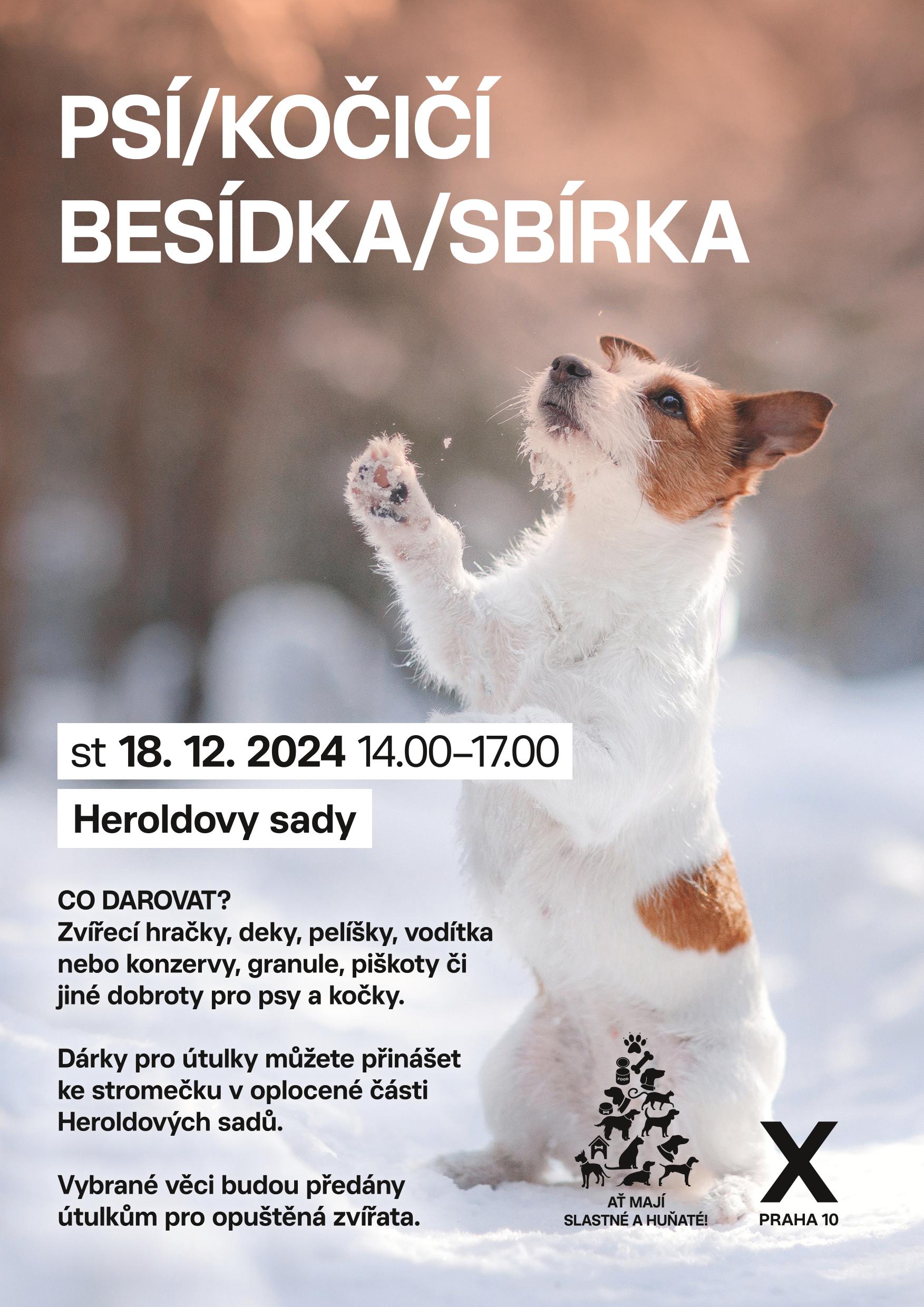 Ve středu 18. prosince 2024 proběhne v době od 14 do 17 hodiny sbírka věcných darů pro psí a kočičí útulky. Při této tradiční akci lze věnovat konzervy pro psy či kočky, granule, piškoty a další pochutiny, deky, zvířecí hračky či třeba již vyřazené pomůcky pro chov psa a kočky. Věci je možné předávat v oplocené části parku v blízkosti zázemí správce.