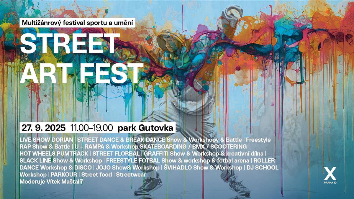 Areál Gutovka se v sobotu 27. 9. 2025 od 11:00 do 19:00 promění v jedinečnou scénu plnou energie, kreativity a zábavy. STREET ART FEST nabídne návštěvníkům den nabitý městskými sporty, tancem, hudbou, výtvarným uměním i sociálně preventivním programem. Festival propojí komunitu mladých tvůrců, sportovců, tanečníků a umělců, kteří se společně postarají o nezapomenutelnou atmosféru.