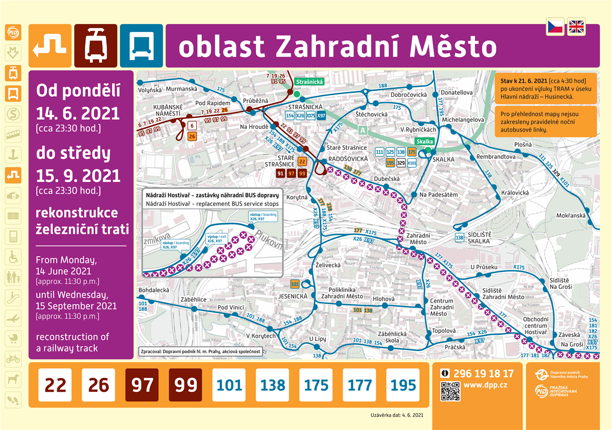 Tramvaje nebudou v provozu v úseku mezi obratištěm Radošovická a obratištěm Nádraží Hostivař, kde navíc proběhne rekonstrukce opěrných zdí. V úseku Strašnická – Nádraží Hostivař bude zavedena náhradní linka X26/X97. Pro individuální automobilovou dopravu a autobusy MHD (náhradní i pravidelnou dopravu) bude zřízena objízdná trasa po komunikacích Jižní spojka, V korytech, Průběžná.